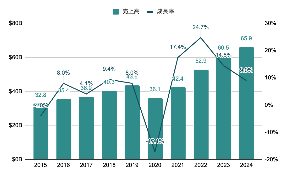 2020年のパンデミック時に大きく減少。波はあるが成長を継続。