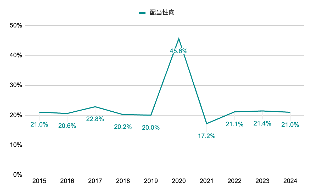 2020年のパンデミック時を除き、安定して20%前後で推移。