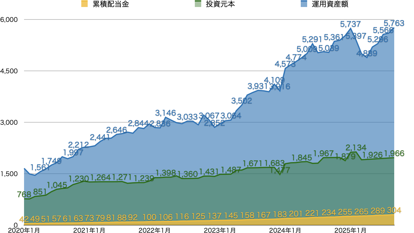 月末時点での運用資産としては過去最高を更新しました。配当金も累計で300万円突破とそれなりに積み上がってきました。