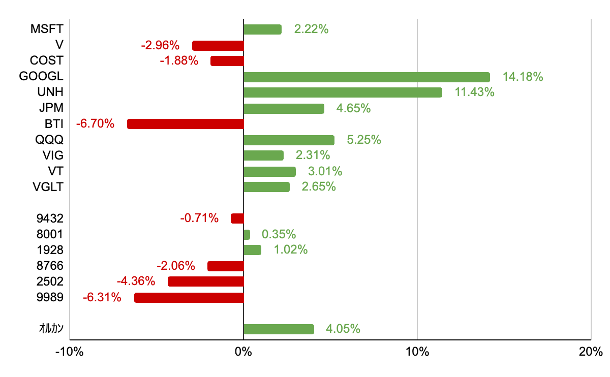 保有比率の高いコストコ・ホールセール<COST>の調整が続いているのが重しになっています。ブリティッシュ・アメリカン・タバコ<BTI>は直近かなり株価が上昇していたので、これくらいの調整は気にする必要なしです。