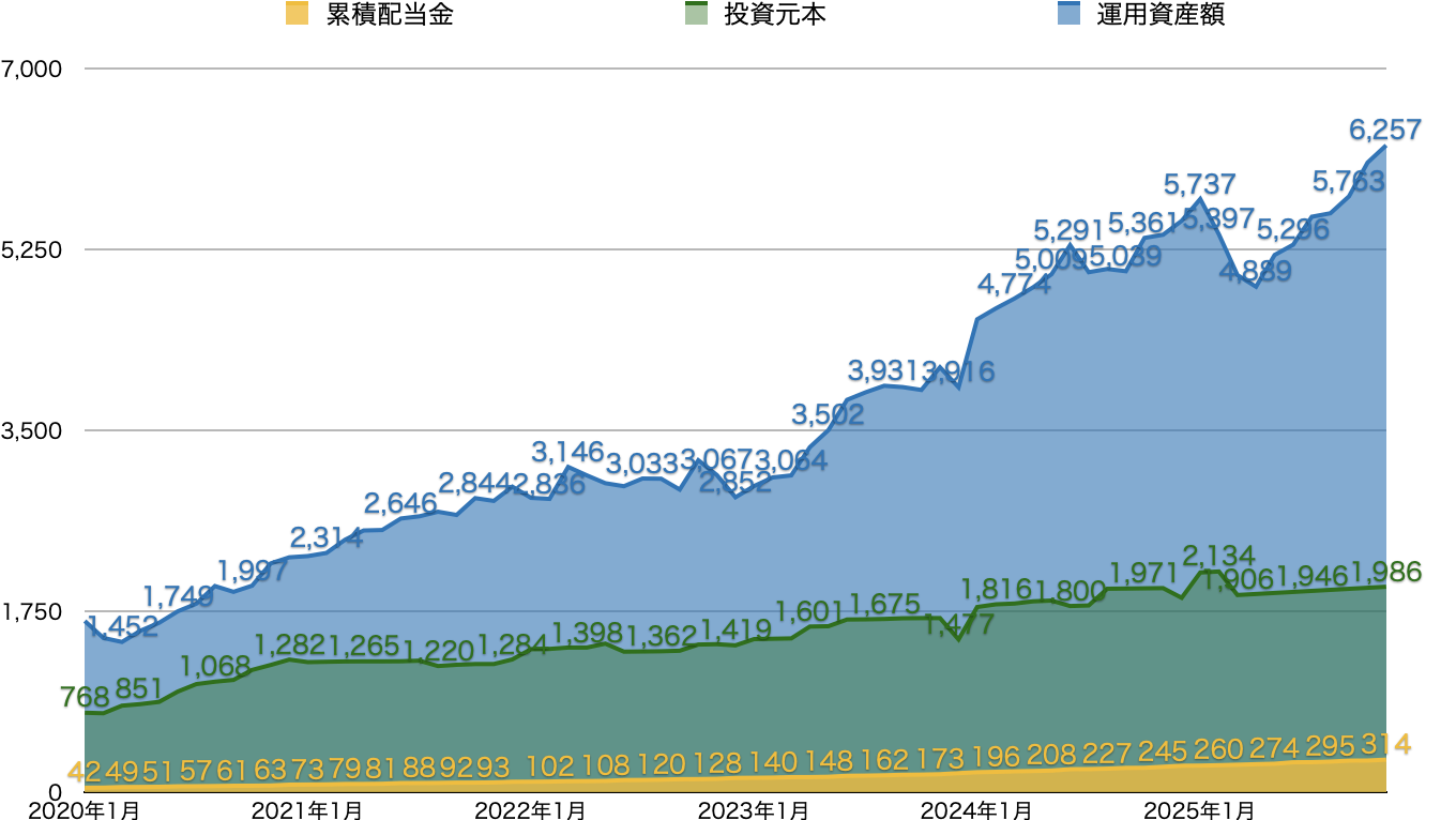 2020年1月以降の月次の運用資産推移です。(縦軸の単位は万円)