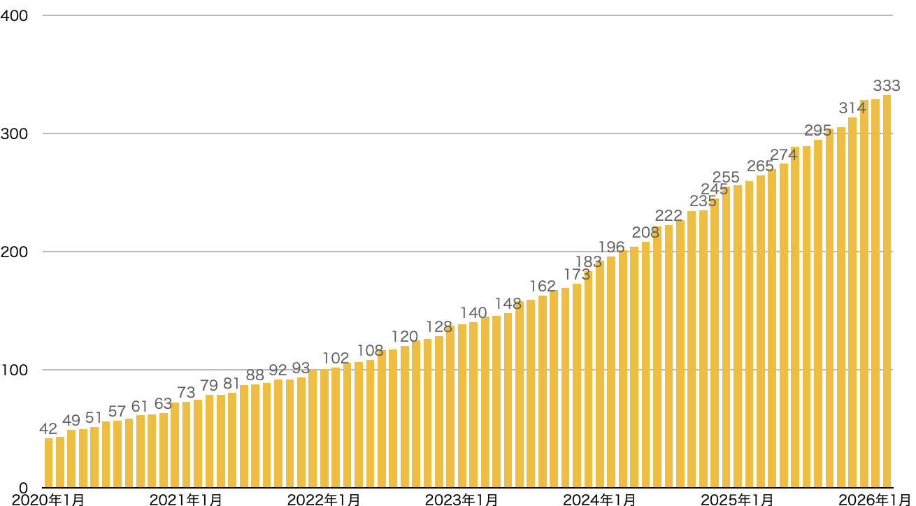 2020年1月以降の月次の運用資産推移です。(縦軸の単位は万円)