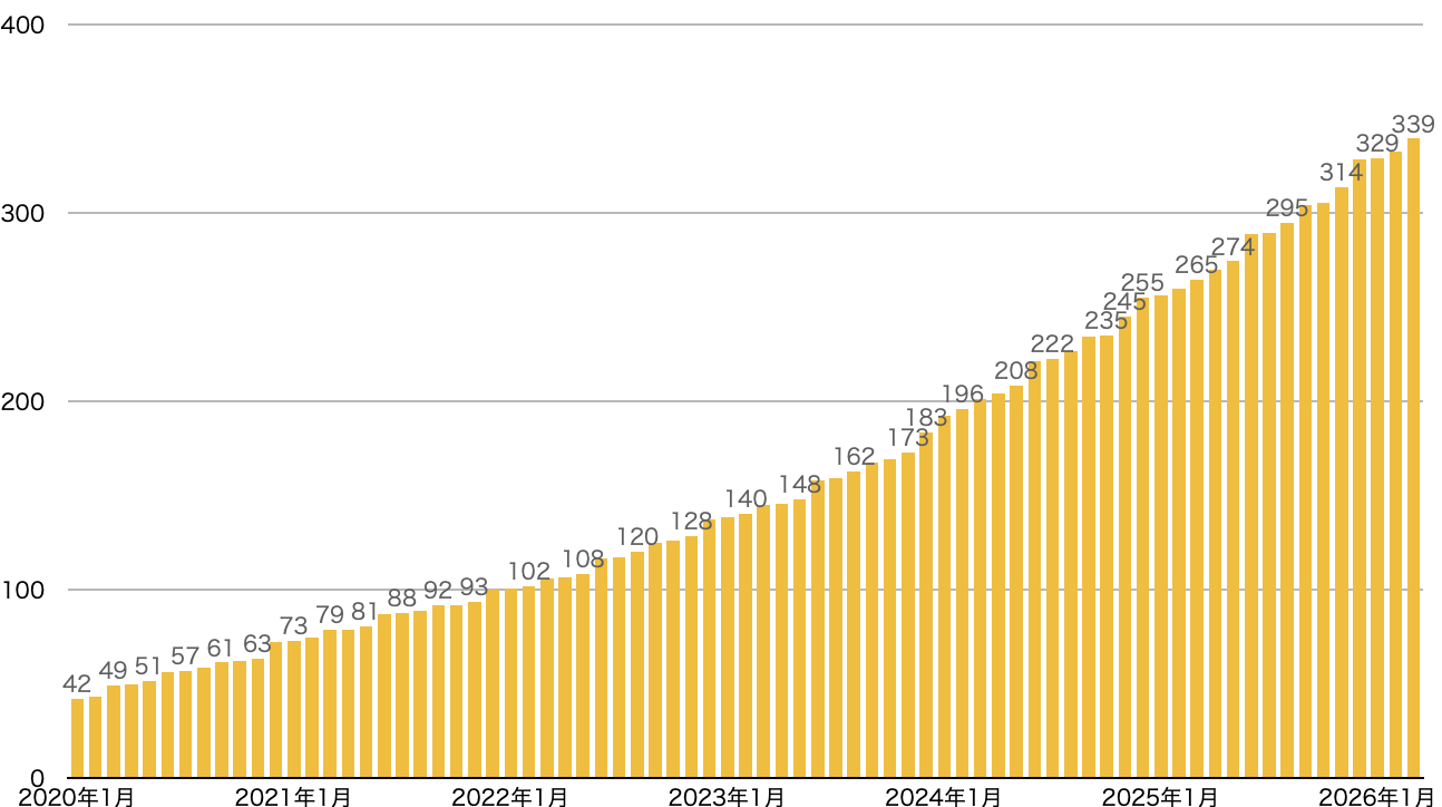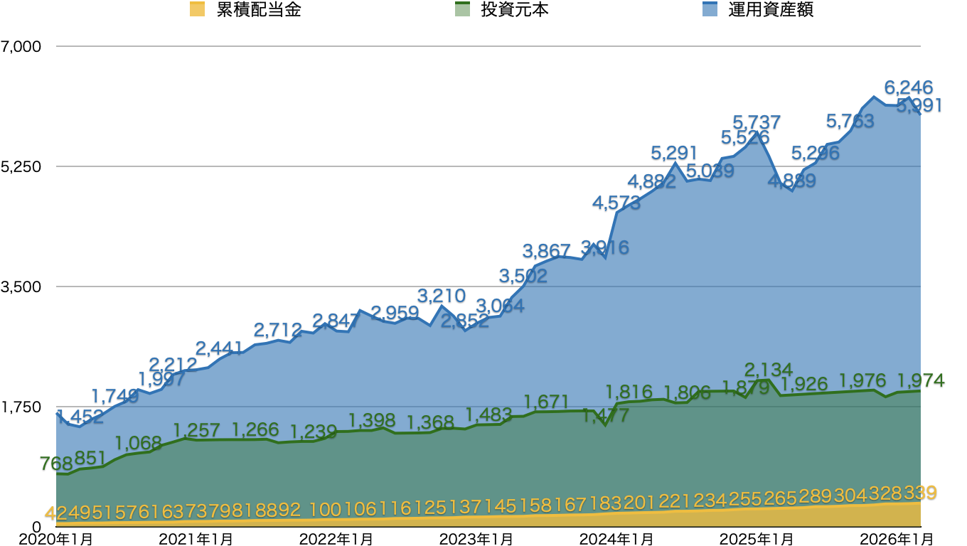 2020年1月以降の月次の運用資産推移です。(縦軸の単位は万円)