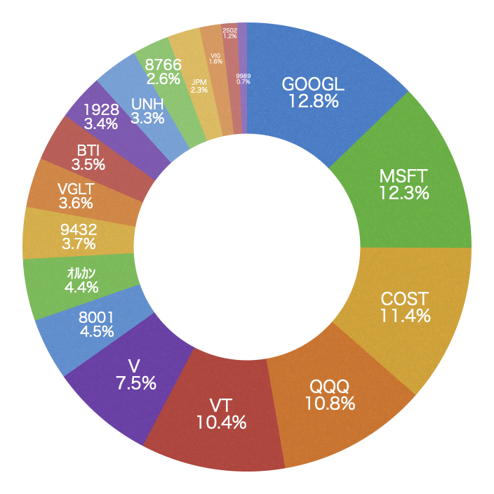 MSFT, V , COST, GOOGLがポートフォリオの主力。