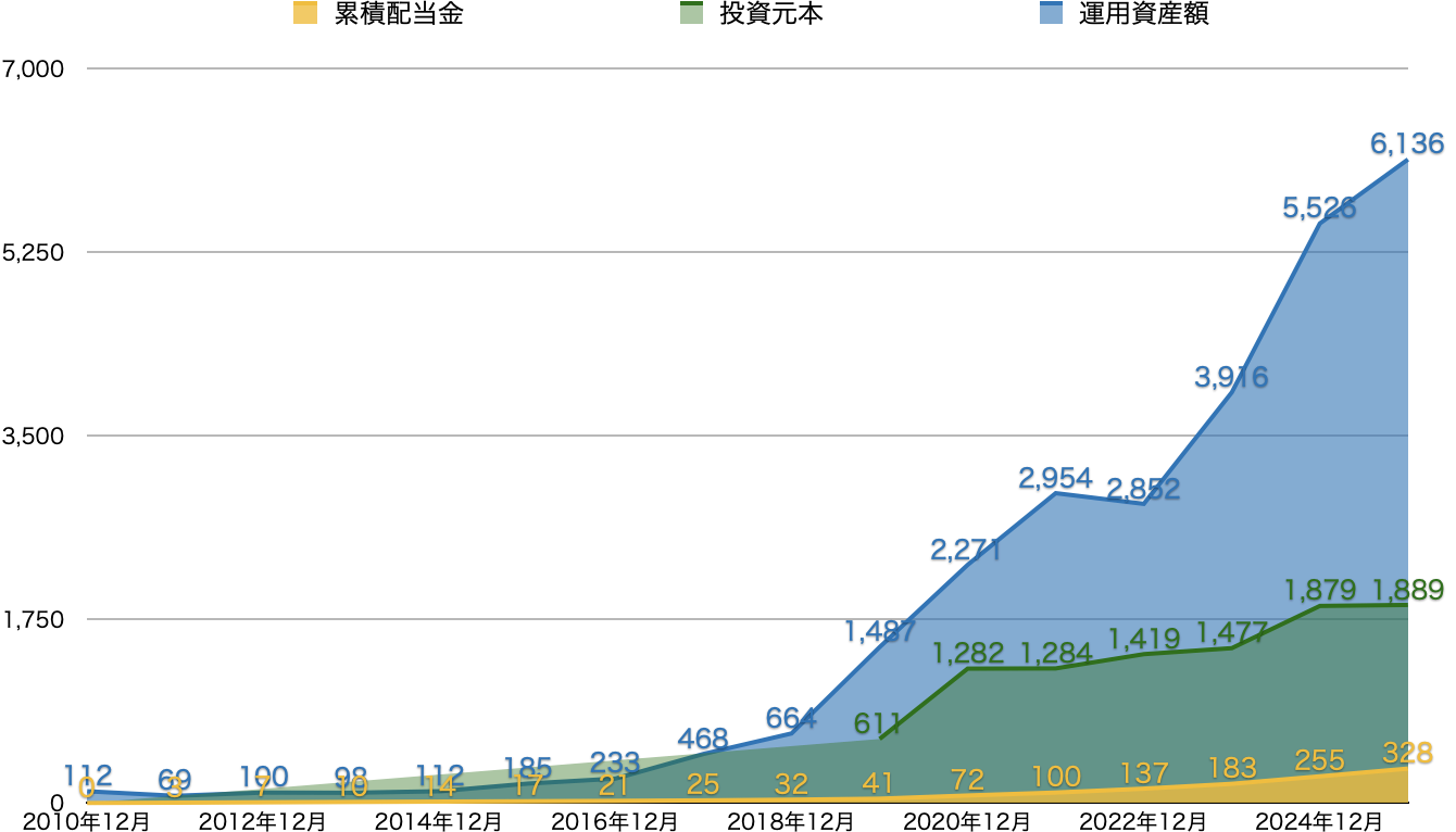投資を開始した2010年以降の年末時点の値。細かく管理していなかった2019年以前は一部概算。