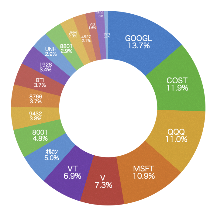 MSFT, V , COST, GOOGLがポートフォリオの主力。